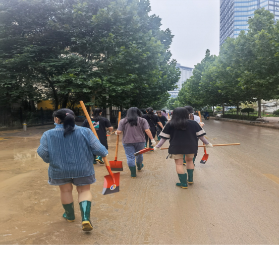 7月22日,市內(nèi)大雨雖過(guò),洪水漸消,但抗災(zāi)救災(zāi)形勢(shì)依然嚴(yán)峻,為了幫助人民群眾迅速恢復(fù)生產(chǎn)生活,中共河南省工程咨詢中心黨委對(duì)中心青年、尤其是青年黨員發(fā)出了倡議書,第十黨支部收到倡議書后,迅速與幫扶社區(qū)取得聯(lián)系,在了解到社區(qū)急需人員、工具清理道路淤泥后,支部黨員及豫信公司員工紛紛“請(qǐng)戰(zhàn)”,踴躍報(bào)名參加防汛志愿服務(wù)活動(dòng),并于23日上午9點(diǎn)集合31人,攜帶公司自購(gòu)清於工具,積極投入到災(zāi)后道路清理工作中。