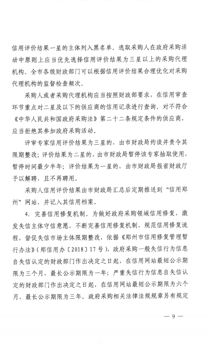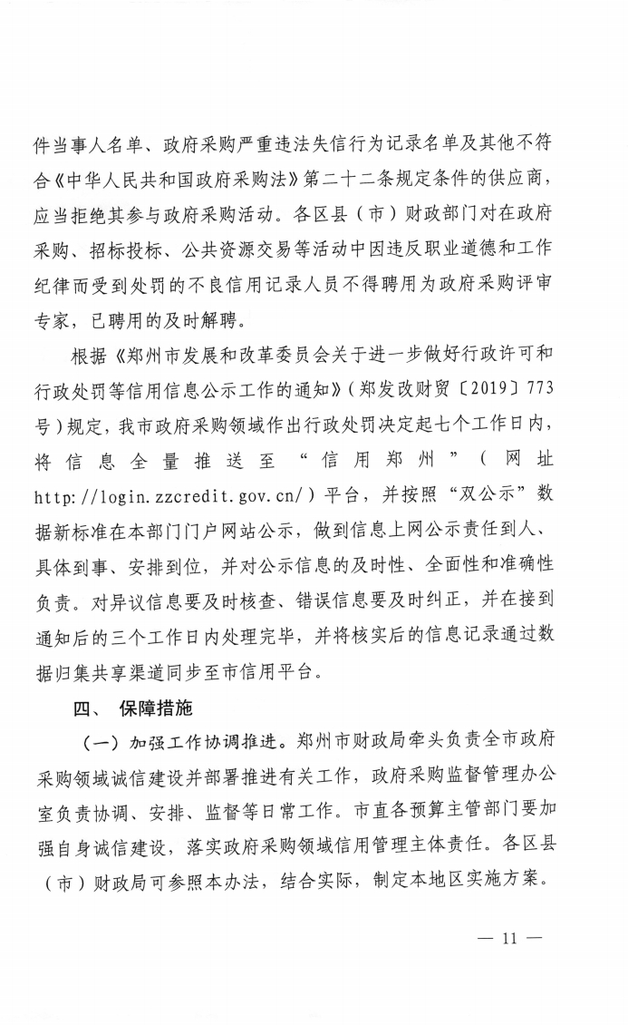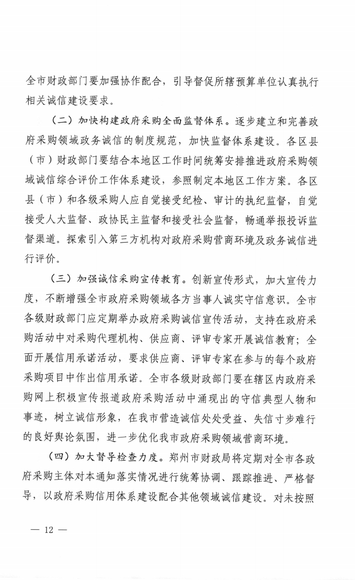 鄭州市財(cái)政局 關(guān)于印發(fā)鄭州市政府采購(gòu)領(lǐng)域信用體系建設(shè)工作實(shí)施方案的通知