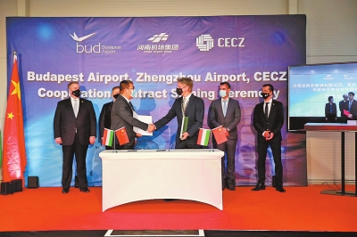 當(dāng)天,河南省機(jī)場(chǎng)集團(tuán)有限公司、布達(dá)佩斯機(jī)場(chǎng)股份有限公司、中歐商貿(mào)物流合作園區(qū)責(zé)任有限公司三方代表通過(guò)視頻方式,共同見(jiàn)證了鄭州至布達(dá)佩斯專屬海外貨站掛牌、簽訂戰(zhàn)略合作協(xié)議過(guò)程。該貨站是國(guó)內(nèi)首個(gè)海外航空貨站。