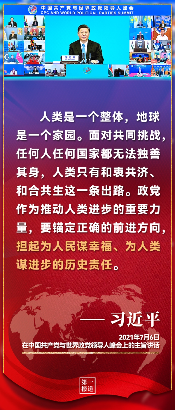 在中國共產(chǎn)黨成立100周年之際,習(xí)近平同來自160多個國家的500多個政黨和政治組織等領(lǐng)導(dǎo)人、逾萬名政黨和各界代表共聚“云端”,探討“為人民謀幸福與政黨的責(zé)任”這個重大命題。