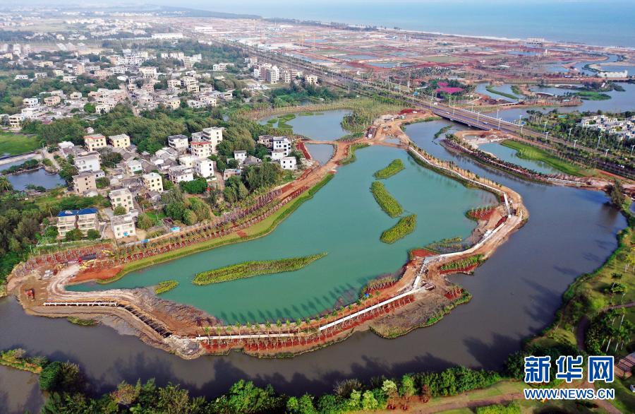 這是??谑薪瓥|新區(qū)芙蓉河綜合治理工程(11月6日攝,無人機照片)。新華社記者 郭程 攝