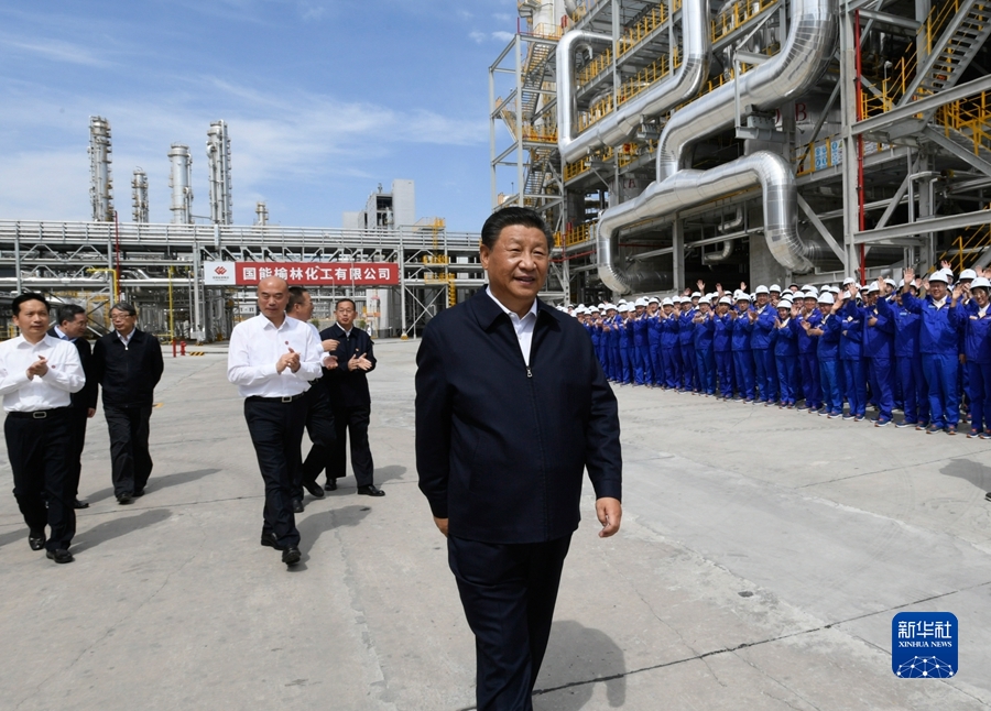 9月13日至14日,中共中央總書記、國家主席、中央軍委主席習近平在陜西省榆林市考察。這是13日上午,習近平在國家能源集團榆林化工有限公司年產(chǎn)40萬噸乙二醇項目現(xiàn)場考察。新華社記者 李學仁 攝