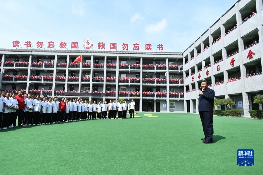 隨后,習近平來到綏德實驗中學,先后走進教室、操場,觀看同學們書法練習和體育鍛煉,同大家親切交流。他指出,中華文明源遠流長、綿延不斷,基礎(chǔ)在教育。實現(xiàn)中華民族偉大復(fù)興,基礎(chǔ)在教育。我們辦教育,就是要提高人民綜合素質(zhì),促進人的全面發(fā)展,提升社會文明程度,堅定文化自信,增強全民族創(chuàng)造活力。要全面貫徹黨的教育方針,落實立德樹人根本任務(wù),厚植愛黨、愛國、愛人民、愛社會主義的情感,努力培養(yǎng)德智體美勞全面發(fā)展的社會主義建設(shè)者和接班人。要深化教育教學改革,強化學校教育主陣地作用,全面提高學校教學質(zhì)量,真正把過重的學業(yè)負擔和校外培訓(xùn)負擔減下來,辦好人民滿意的教育。最后,習近平勉勵同學們珍惜大好年華,修身立德、勤學上進、強健體魄、錘煉意志,做對國家、對人民、對社會有用的人。