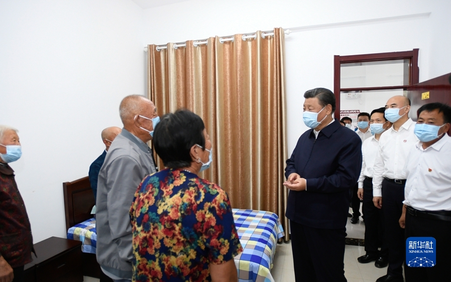 9月13日至14日,中共中央總書記、國家主席、中央軍委主席習近平在陜西省榆林市考察。這是14日下午,習近平在綏德縣張家砭鎮(zhèn)郝家橋村互助幸福院,同村里的老人親切交流。新華社記者 李學仁 攝