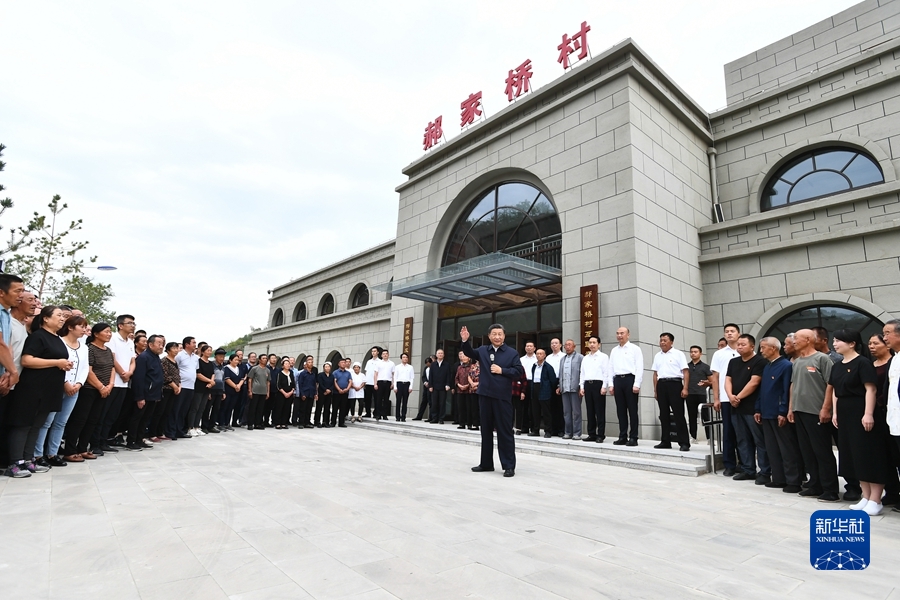 位于綏德縣城西南的張家砭鎮(zhèn)郝家橋村,是綏德地委在抗戰(zhàn)時期經(jīng)過調(diào)查研究發(fā)現(xiàn)的一個模范村,通過開展“村村學習郝家橋,人人學習劉玉厚”活動,掀起了大生產(chǎn)熱潮。黨的十八大以來,郝家橋村積極發(fā)展特色產(chǎn)業(yè),村容村貌和村民生活發(fā)生了深刻變化,榮獲“全國脫貧攻堅楷?!睒s譽稱號。14日下午,習近平來到這里,詳細觀看村史展覽,了解這個“紅色山村”的光榮革命歷史以及革命傳統(tǒng)傳承情況。隨后,習近平來到村民侯志榮家中看望。侯志榮一家曾經(jīng)因病致貧,靠著各級幫扶和自身努力2016年擺脫貧困。習近平強調(diào),看到你們一家人日子越過越好、人丁興旺,我感到很欣慰。讓鄉(xiāng)親們過好光景,是我們黨始終不渝的初心使命,共產(chǎn)黨就要把這件事情干好,不斷交上好答卷。全黨全國全社會都要大力弘揚脫貧攻堅精神,奮發(fā)圖強、自力更生,不斷奪取全面建設(shè)社會主義現(xiàn)代化國家新的更大勝利。
