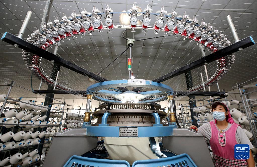 8月22日,在山東省棗莊市稅郭鎮(zhèn)的一家紡織企業(yè),工人在生產(chǎn)純棉布。稅郭鎮(zhèn)生產(chǎn)的紡織服裝產(chǎn)品出口到美國、德國、法國、日本、韓國等38個國家和地區(qū)。新華社發(fā)(孫中喆 攝)