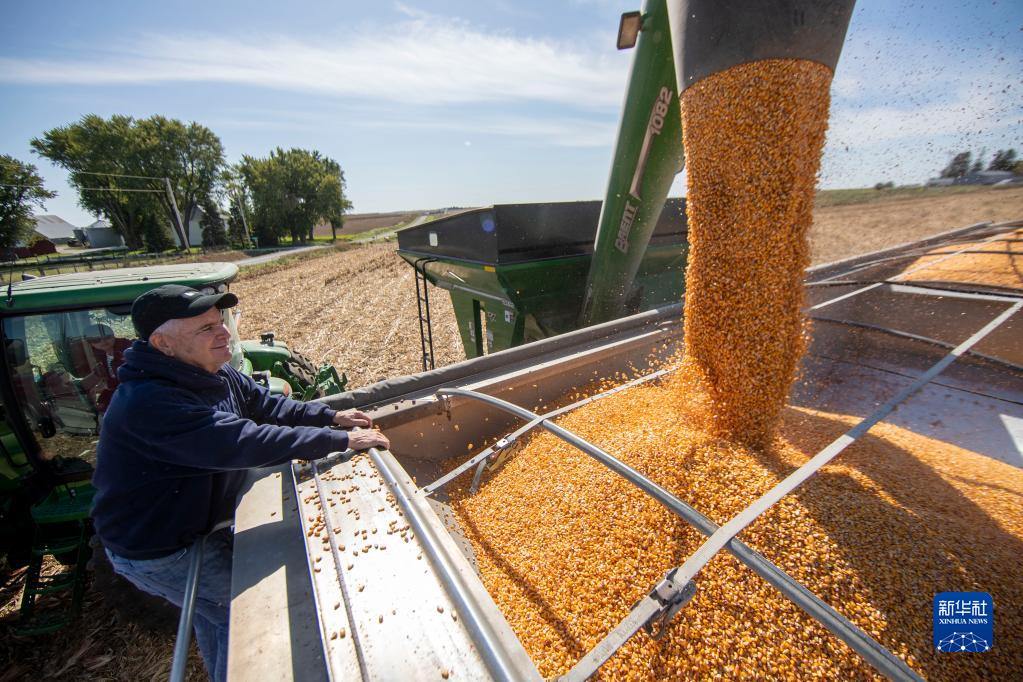 2019年10月14日,在美國艾奧瓦州大西洋鎮(zhèn),比爾·佩雷特看著收獲的玉米裝上卡車。新華社記者 王迎 攝