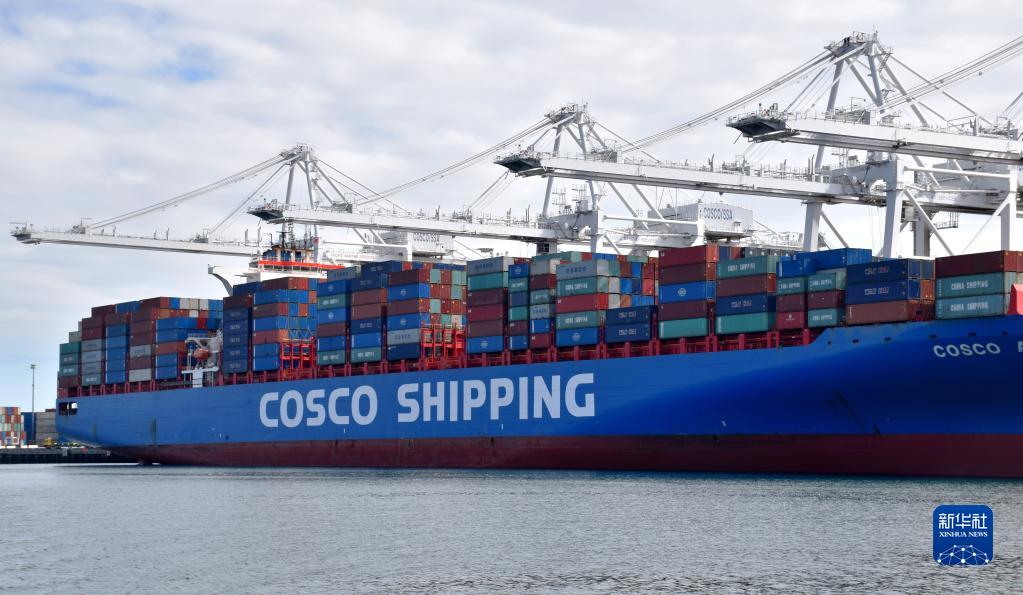 這是2019年2月27日在長灘港拍攝的一艘中國遠(yuǎn)洋運輸集團(COSCO)的集裝箱貨輪。新華社記者 李穎 攝
