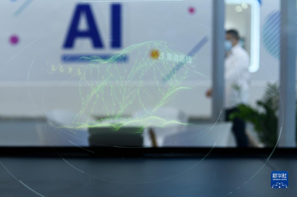 7月8日在2021世界人工智能大會上拍攝的密苑云頂樂園三維全息投影圖。新華社發(fā)(胡智軒 攝)