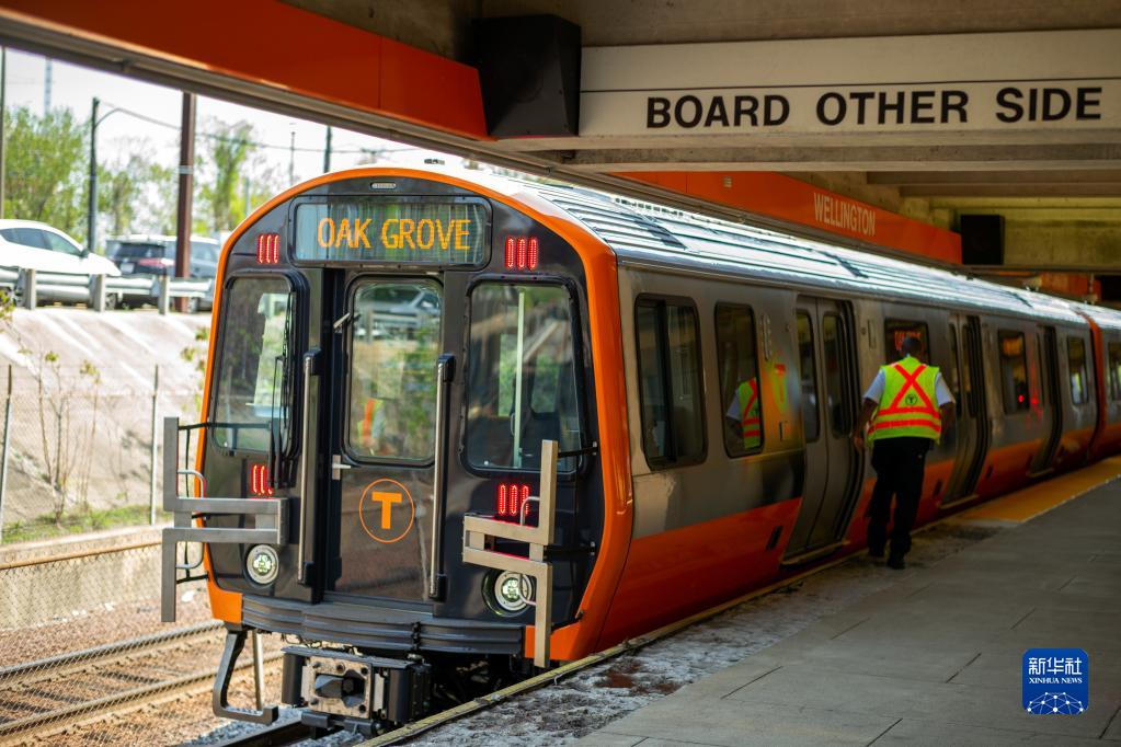 這是2018年5月15日在美國馬薩諸塞州梅德福德惠靈頓站拍攝的中車長客為波士頓橙線地鐵“量身訂制”的首批車輛。這批地鐵列車整車具有完全自主知識產(chǎn)權(quán),是中國首批依照美國標(biāo)準(zhǔn)生產(chǎn)的地鐵車輛。新華社記者 李木子 攝