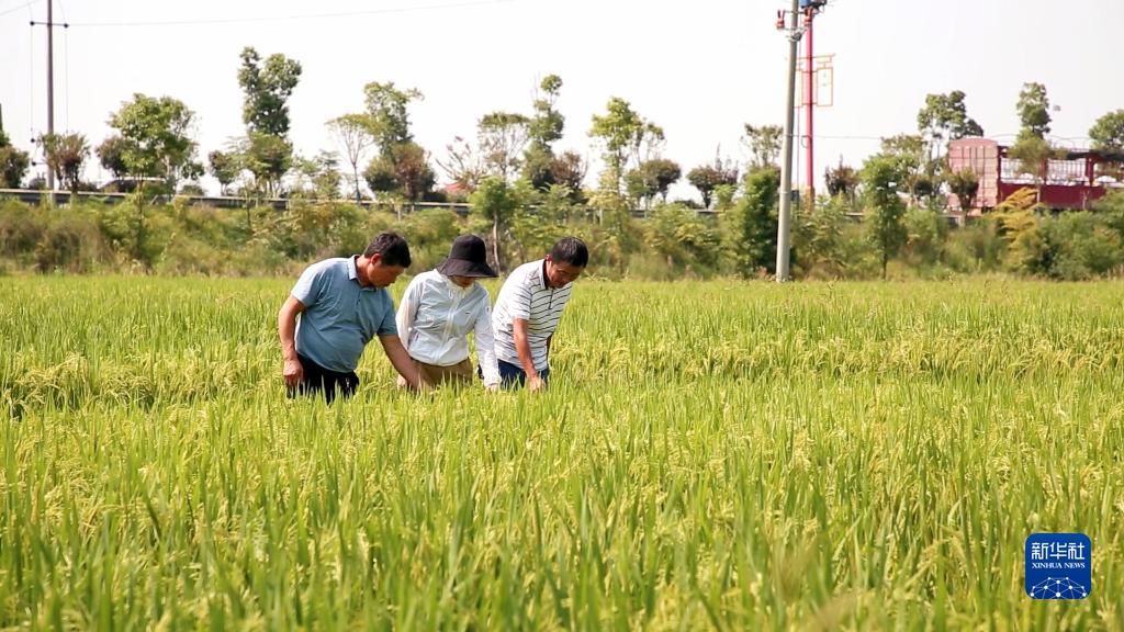 在汨羅鎮(zhèn)江景村,汨羅市農(nóng)業(yè)農(nóng)村局的兩名技術人員正查看“泰優(yōu)390”的結實率。根據(jù)各家情況,他們向村民們科普如何更好地做到綠色病蟲害防控、調(diào)整農(nóng)藥和化肥用量。