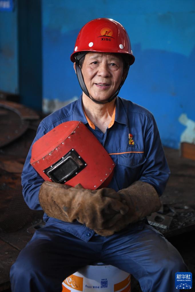 在湖南華菱湘潭鋼鐵有限公司廠房內拍攝的艾愛國(6月12日攝)。新華社記者 薛宇舸 攝