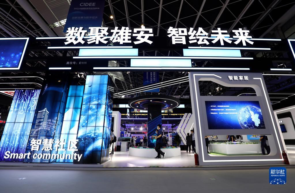 9月6日,參觀者在2021中國(guó)國(guó)際數(shù)字經(jīng)濟(jì)博覽會(huì)上參觀“數(shù)聚雄安 智繪未來(lái)”雄安展區(qū)。新華社發(fā)(梁子棟 攝)