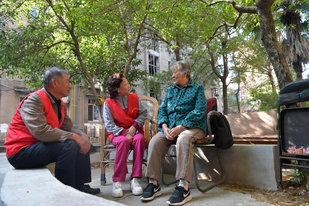 2019年11月,在江西省新余市渝水區(qū)新鋼街道含笑社區(qū),“敲門嫂”志愿服務(wù)隊在社區(qū)里陪一名老人聊家常(新華社記者彭昭之 攝)