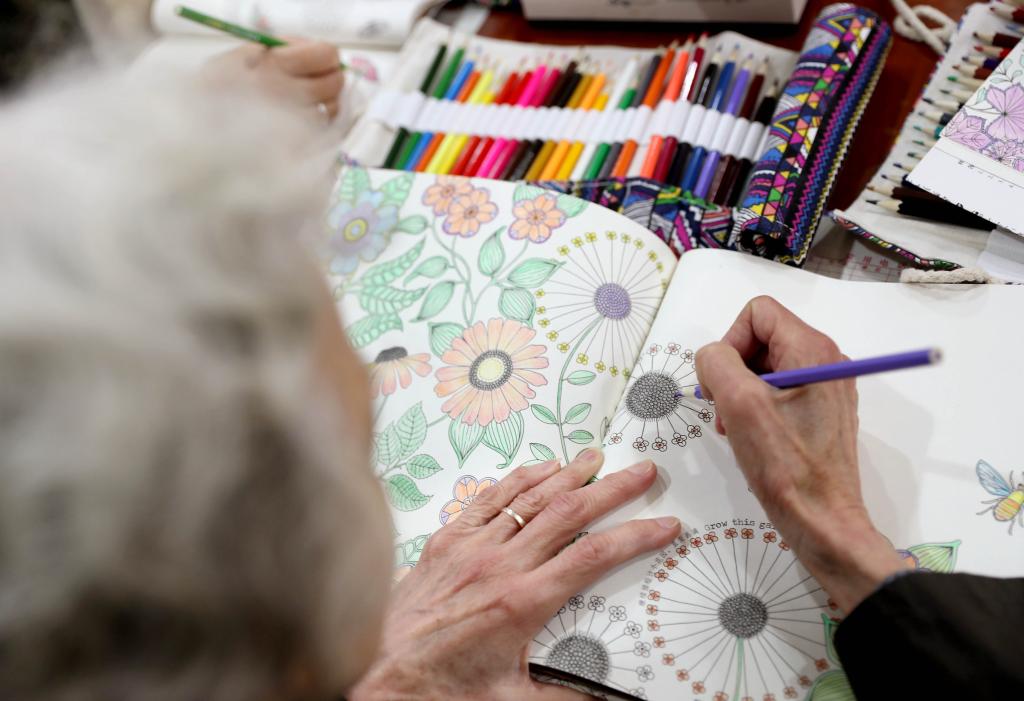 2020年11月,在上海市靜安區(qū)江寧路街道愛老家園,一位老年人在通過圖畫填色進行康復(fù)訓(xùn)練(新華社記者劉穎 攝)