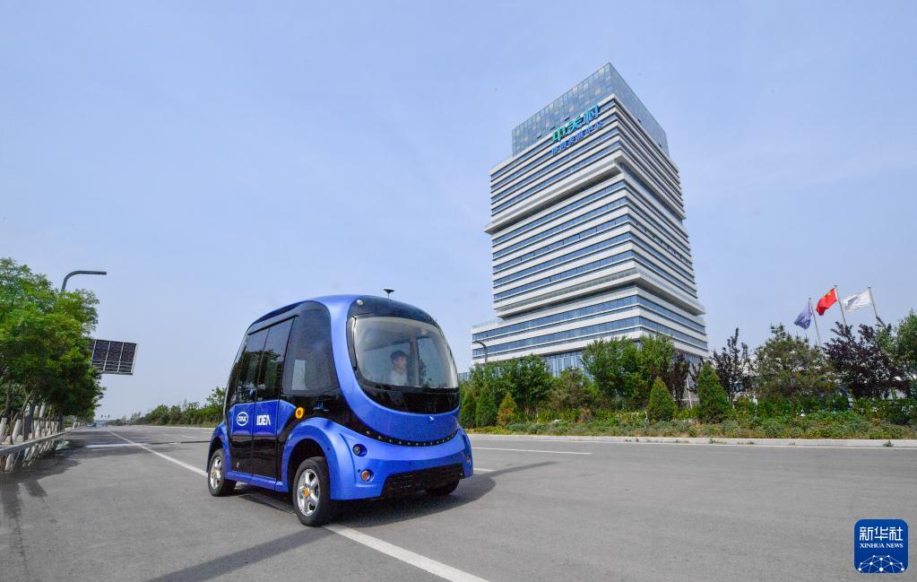 一輛無人駕駛汽車在京津中關(guān)村科技城內(nèi)部道路進(jìn)行道路測試(5月19日攝)。新華社記者 孫凡越 攝