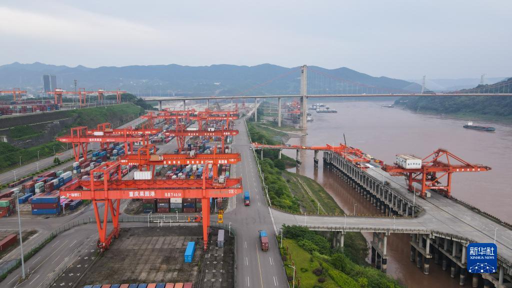 南來北往,西進(jìn)東出,四通八達(dá)。果園港已成為長江上游地區(qū)聯(lián)通全球的“中轉(zhuǎn)站”?!耙蚤L江為主動脈,不同的物流通道,在這里實現(xiàn)‘自由組合’?!惫麍@港國際物流樞紐建設(shè)發(fā)展有限公司董事長劉軍說。
