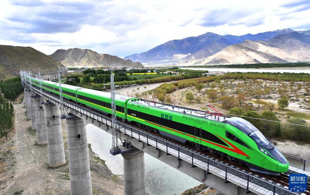數(shù)千里之外,青藏高原。雅魯藏布江河谷中,全新的復(fù)興號(hào)列車呼嘯而過(guò)。
