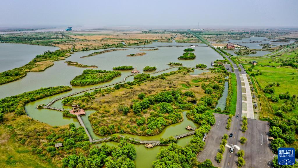 這是山東黃河三角洲國(guó)家級(jí)自然保護(hù)區(qū)景色(5月13日攝,無(wú)人機(jī)照片)。新華社記者 郭緒雷 攝