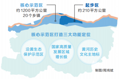 《規(guī)劃》明確了核心示范區(qū)打造沿黃生態(tài)保護(hù)示范區(qū)、國家高質(zhì)量發(fā)展區(qū)域增長極、黃河歷史文化主地標(biāo)的三大功能定位和建設(shè)成為大保護(hù)大治理展示窗口、新理念新場景展示窗口和華夏源黃河魂展示窗口的發(fā)展定位。