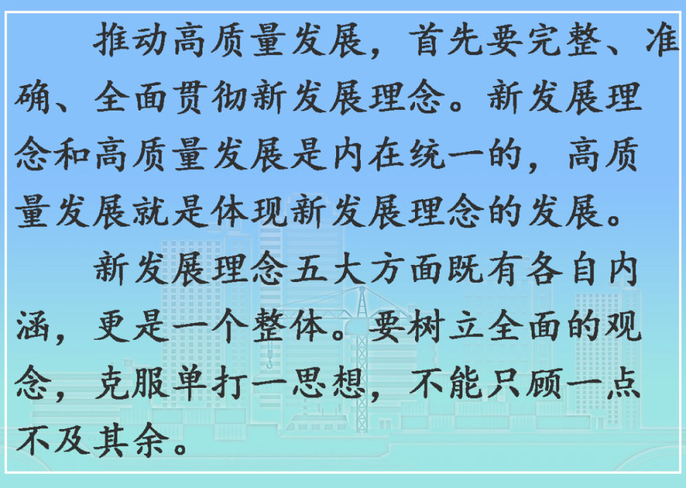 黨的十九屆六中全會審議通過的《中共中央關(guān)于黨的百年奮斗重大成就和歷史經(jīng)驗的決議》指出:“黨中央強調(diào),貫徹新發(fā)展理念是關(guān)系我國發(fā)展全局的一場深刻變革,不能簡單以生產(chǎn)總值增長率論英雄,必須實現(xiàn)創(chuàng)新成為第一動力、協(xié)調(diào)成為內(nèi)生特點、綠色成為普遍形態(tài)、開放成為必由之路、共享成為根本目的的高質(zhì)量發(fā)展,推動經(jīng)濟發(fā)展質(zhì)量變革、效率變革、動力變革?!?/span>