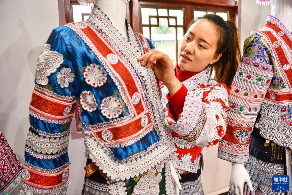 2021年春節(jié)前夕,習近平總書記來到貴州畢節(jié)化屋村,扶貧車間里精美的苗族傳統(tǒng)服飾吸引了總書記的目光。
