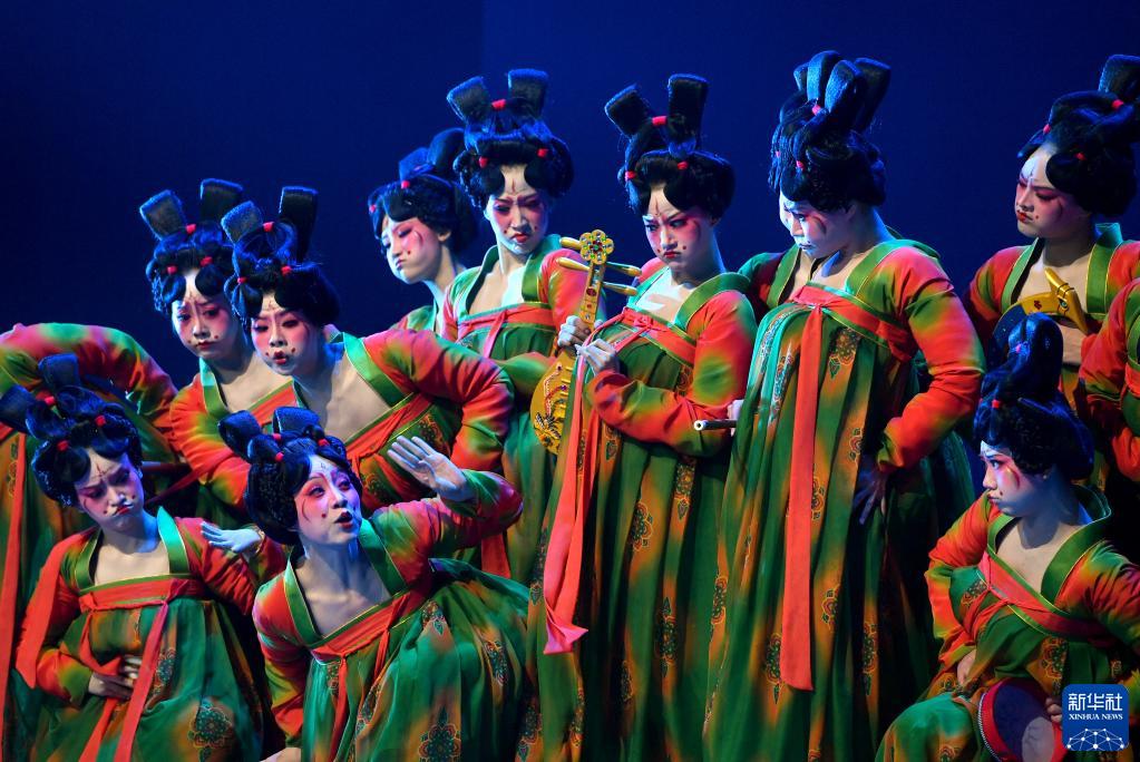 演員在第十二屆中國舞蹈“荷花獎”古典舞終評演出上表演《唐宮夜宴》(2020年10月16日攝)。新華社記者 李嘉南 攝