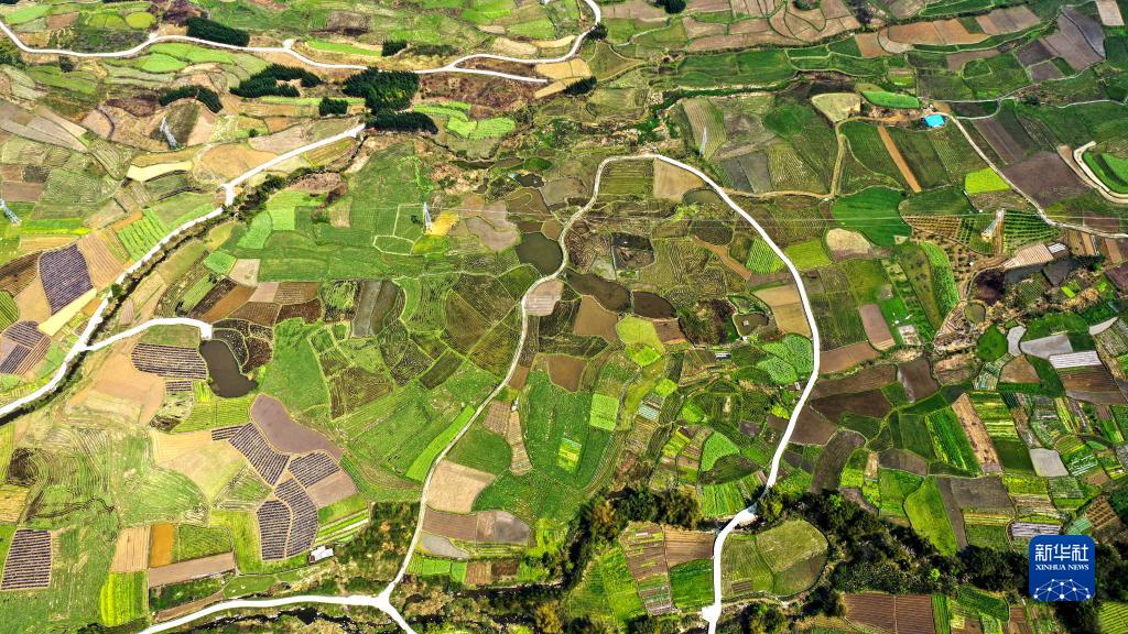 廣西融安縣潭頭鄉(xiāng)新桂村的春耕田園景色(3月17日攝,無人機照片)。新華社記者 張愛林 攝