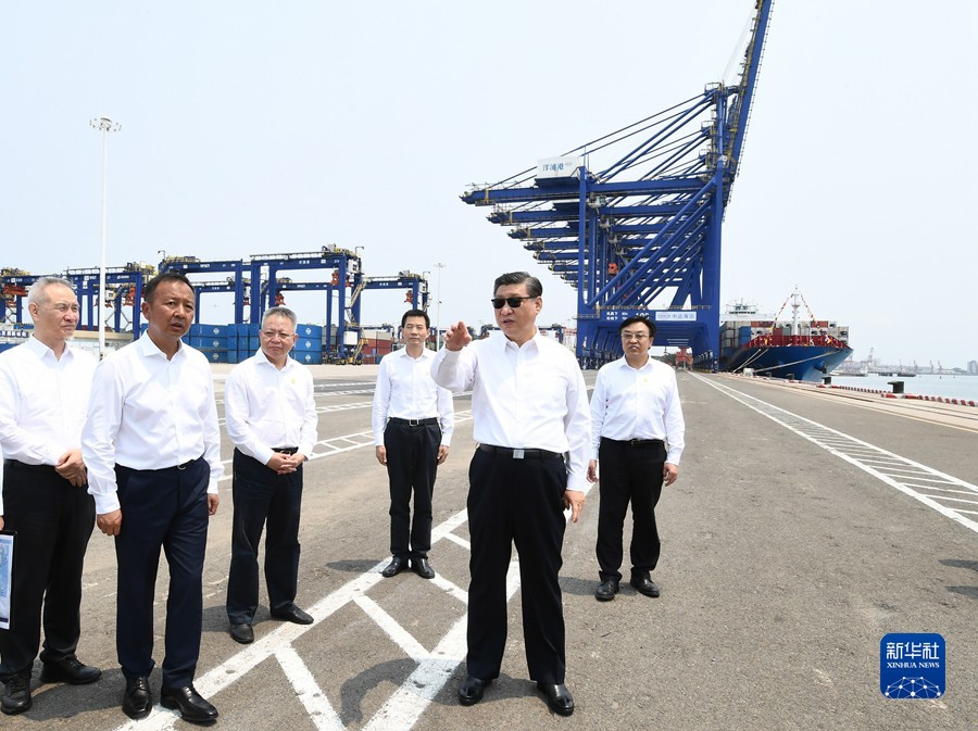 隨后,習(xí)近平來到洋浦國際集裝箱碼頭小鏟灘港區(qū),了解港口建設(shè)發(fā)展情況,同現(xiàn)場作業(yè)人員、掛職干部代表等親切交流。習(xí)近平強(qiáng)調(diào),振興港口、發(fā)展運(yùn)輸業(yè),要把握好定位,增強(qiáng)適配性,堅(jiān)持綠色發(fā)展、生態(tài)優(yōu)先,推動港口發(fā)展同洋浦經(jīng)濟(jì)開發(fā)區(qū)、自由貿(mào)易港建設(shè)相得益彰、互促共進(jìn),更好服務(wù)建設(shè)西部陸海新通道、共建“一帶一路”。他指出,黨中央選派干部來自由貿(mào)易港掛職,既體現(xiàn)了黨中央對自由貿(mào)易港建設(shè)的關(guān)心和支持,也是對干部的培養(yǎng)鍛煉,要發(fā)揮掛職干部的積極作用,讓他們在基層一線增長才干。