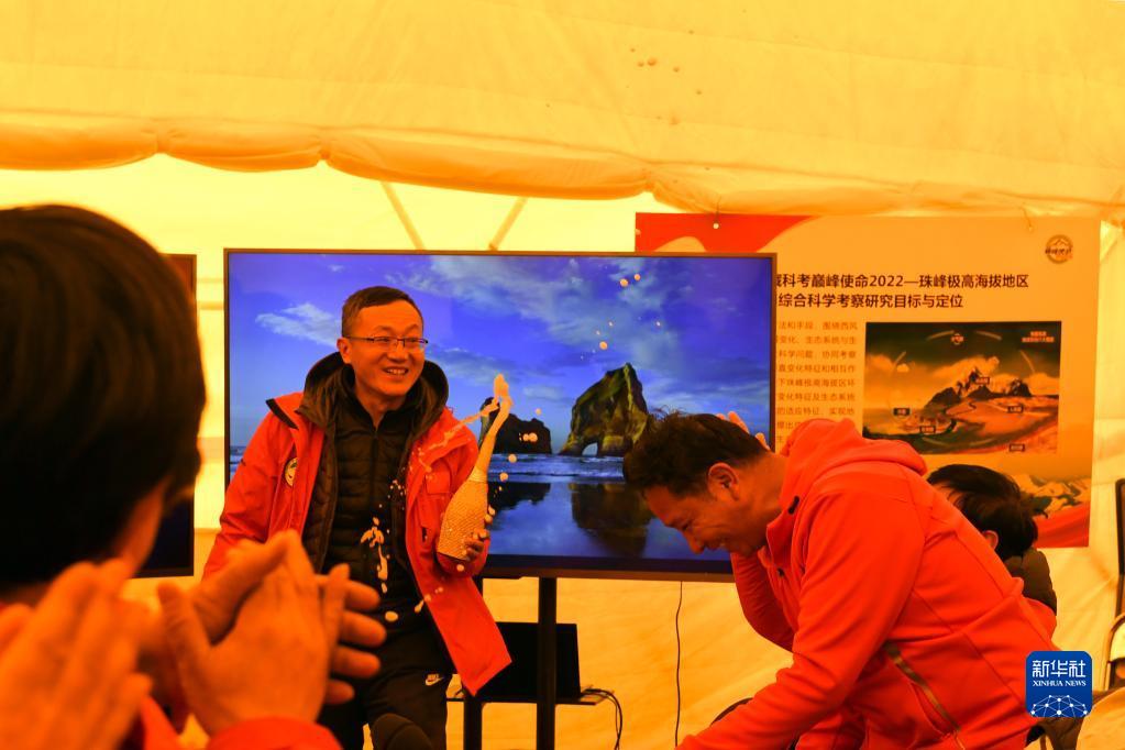 當(dāng)日凌晨3點(diǎn),科考隊(duì)員從珠峰海拔8300米的突擊營地開始沖頂。他們在海拔8830米處,架設(shè)了世界海拔最高自動(dòng)氣象站,并在8848.86米的巔峰,利用高精度雷達(dá)測量冰雪厚度。任務(wù)一個(gè)接一個(gè)順利完成,珠峰大本營“巔峰使命”總指揮會議室?guī)づ窭铮娮C這一盛舉的科學(xué)家和工作人員的掌聲、喝彩聲,一次比一次響亮。