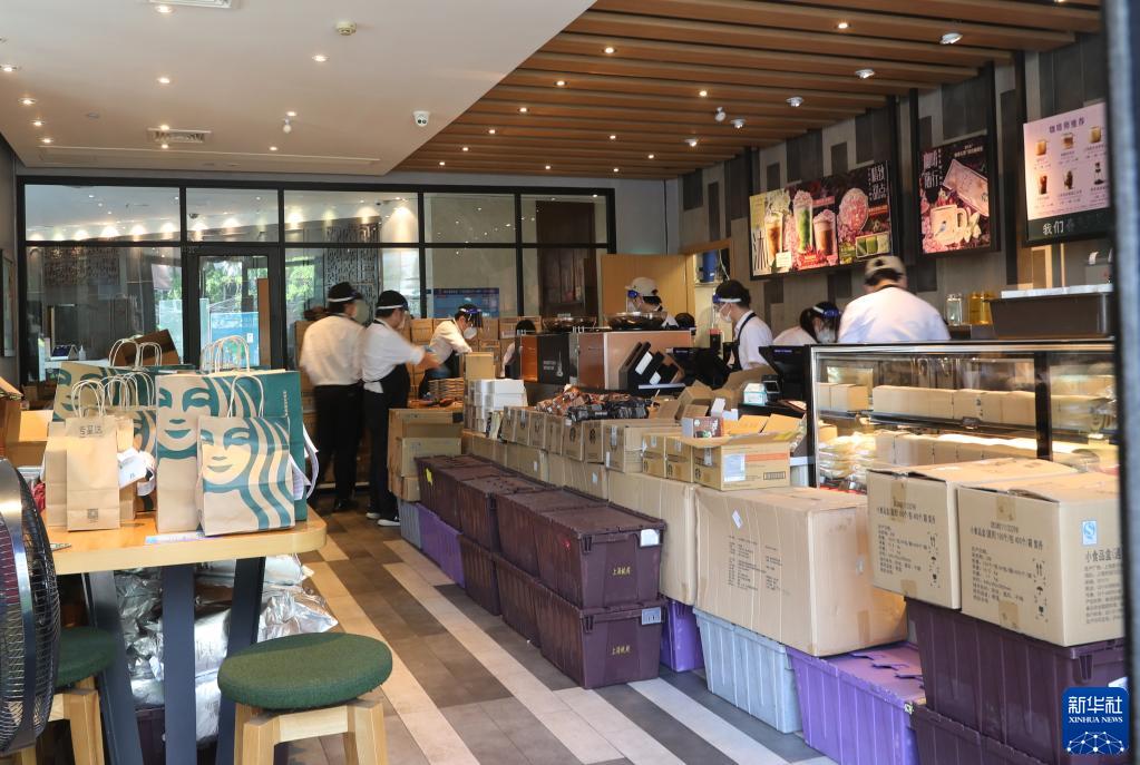 11時(shí),星巴克淮海西路店,經(jīng)理盛莉熟練地打包了4杯拿鐵交給外賣小哥。16日剛剛恢復(fù)營(yíng)業(yè)的這家店,拿鐵和焦糖瑪奇朵成為最受歡迎單品,消費(fèi)者線上下單,由騎手送達(dá)。有咖啡店“歸來(lái)”是城市逐步恢復(fù)的一個(gè)縮影。