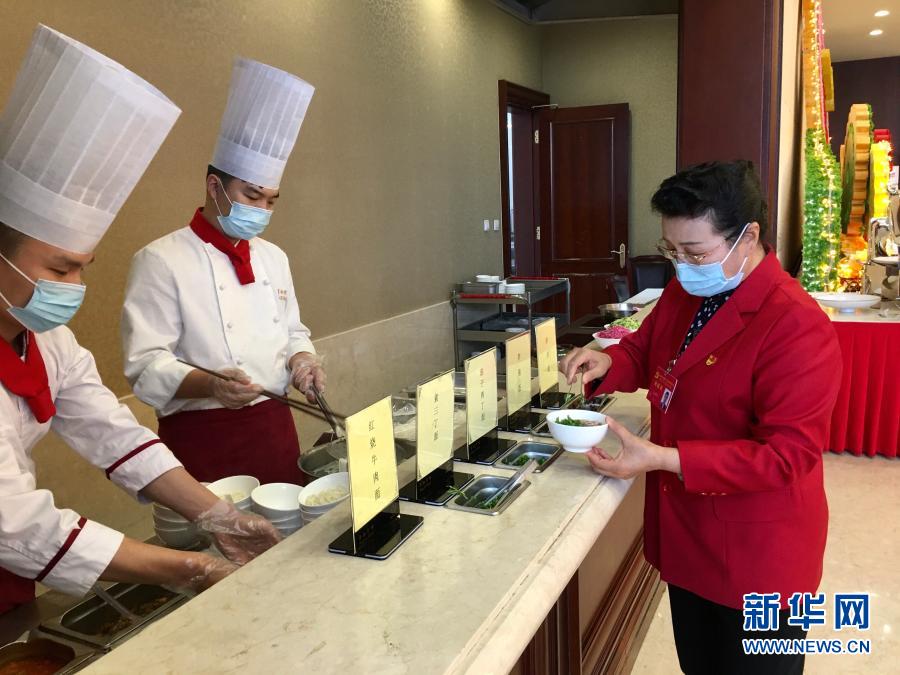 2020年10月29日,受邀列席黨的十九屆五中全會的基層社區(qū)工作者吳亞琴在京西賓館餐廳取了一份小碗面。她表示:“盛面的碗也都是小碗,吃多少打多少。”新華社記者 朱基釵 攝