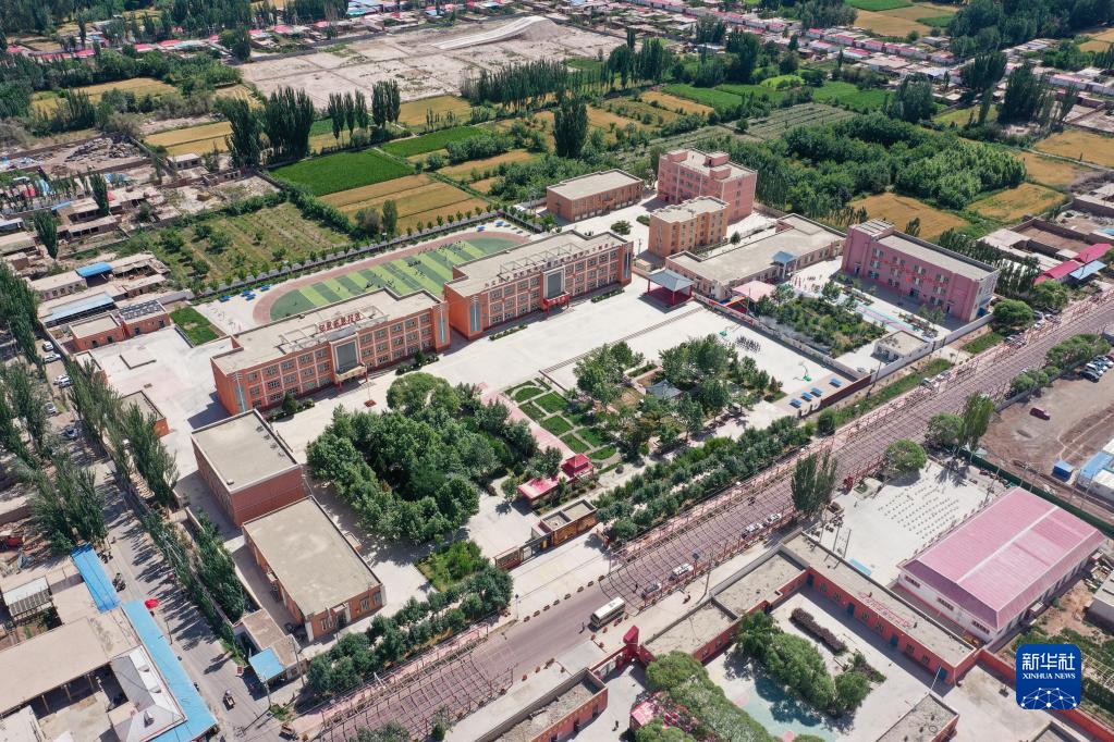 這是新疆喀什地區(qū)疏附縣托克扎克鎮(zhèn)中心小學(xué)(2022年6月10日攝,無(wú)人機(jī)照片)。新華社記者 丁磊 攝