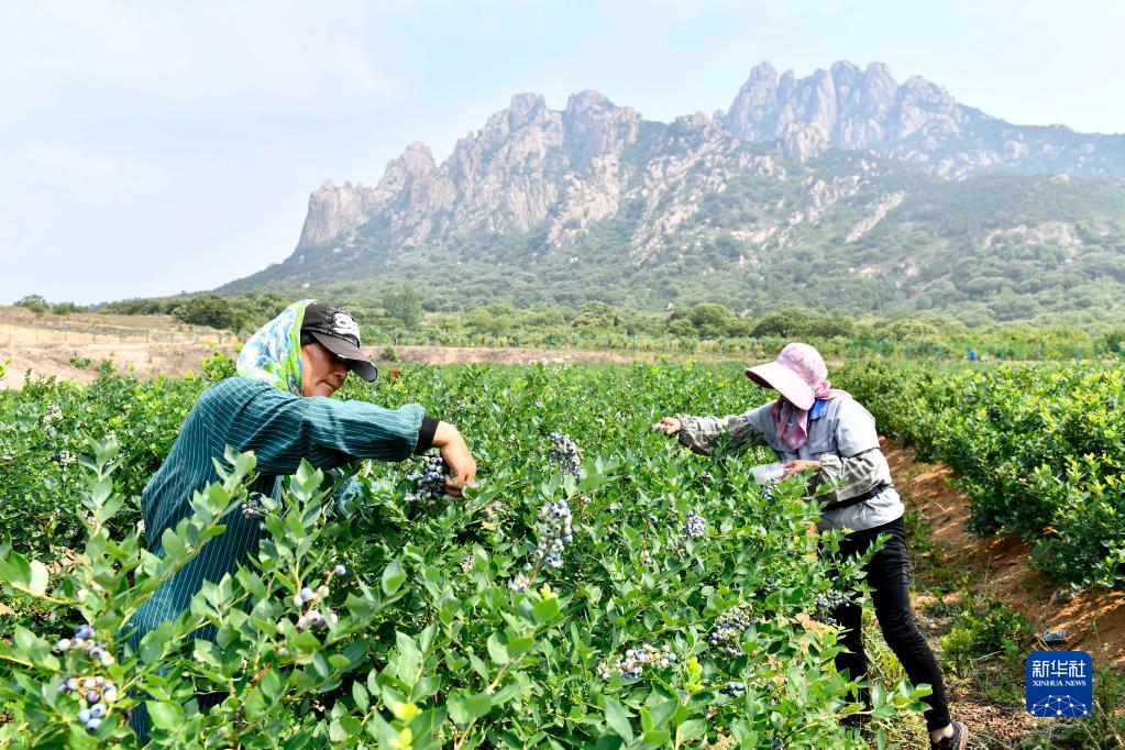 村民在山東省五蓮縣九五農(nóng)業(yè)現(xiàn)代林果科技產(chǎn)業(yè)園采摘藍莓(2022年6月18日攝)。新華社記者 郭緒雷 攝