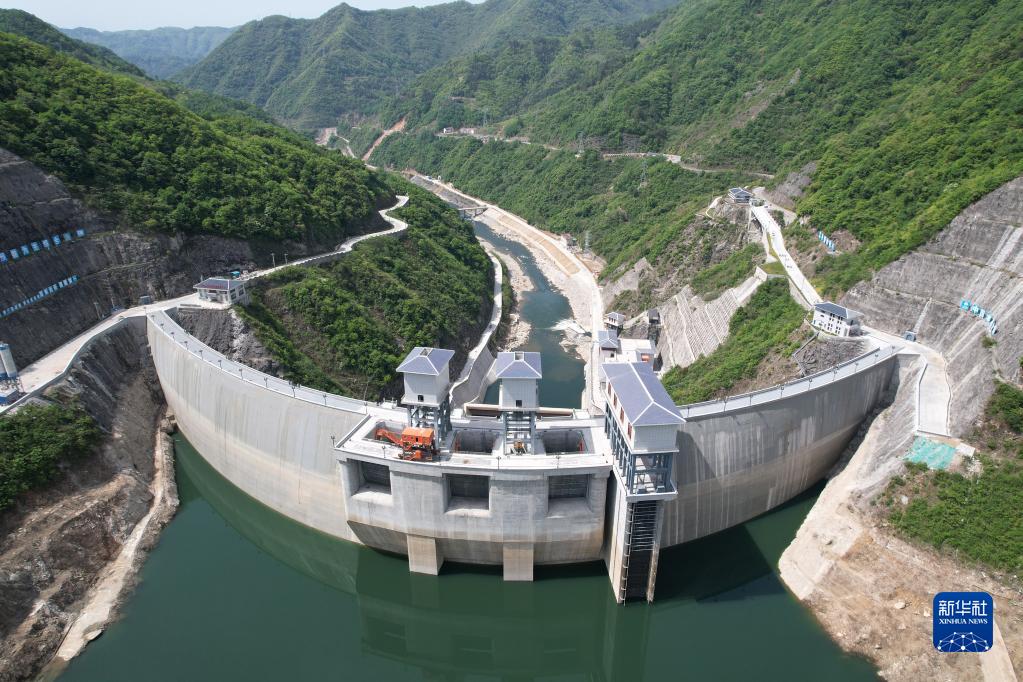 引漢濟(jì)渭工程三河口水利樞紐工程(2022年4月19日攝,無人機(jī)照片)。新華社記者 邵瑞 攝