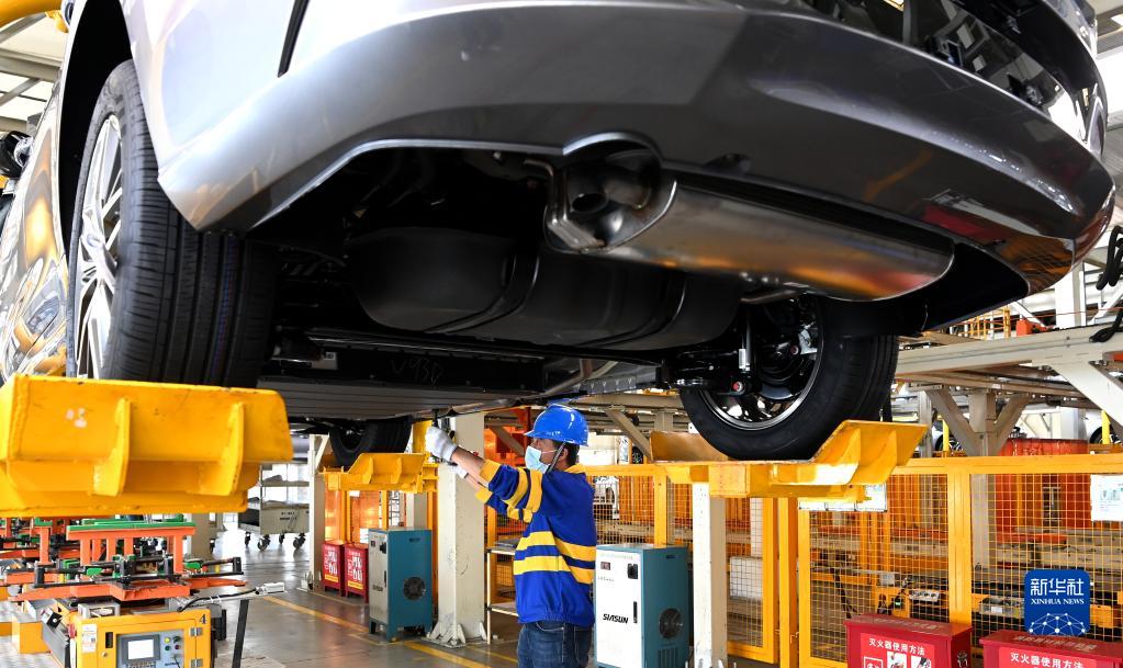 工作人員在西安比亞迪草堂工業(yè)園汽車總裝廠進(jìn)行新能源汽車裝配(2022年4月20日攝)。新華社記者 劉瀟 攝