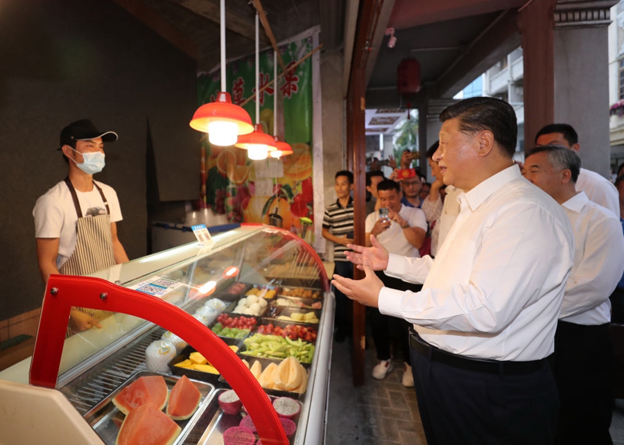 ↑2020年10月12日至13日,習(xí)近平在廣東考察。這是13日下午,習(xí)近平在汕頭市小公園開(kāi)埠區(qū),同商鋪店員親切交流,了解復(fù)商復(fù)市和常態(tài)化疫情防控情況。
