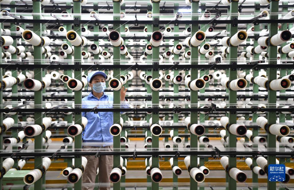 中國平煤神馬集團(tuán)平頂山神馬簾子布發(fā)展有限公司的員工在查看尼龍絲道(2019年3月20日攝)新華社記者 李嘉南 攝