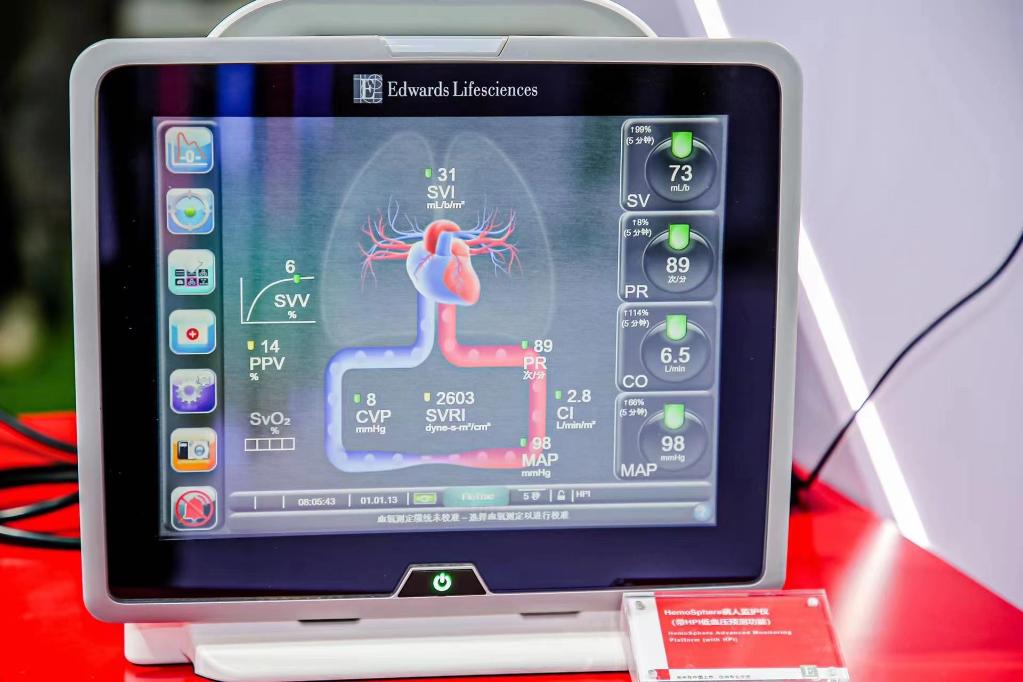 第四屆進博會上的愛德華生命科學(xué)展臺里,全新一代HemoSphere病人監(jiān)護儀正在展示。(受訪對象提供)