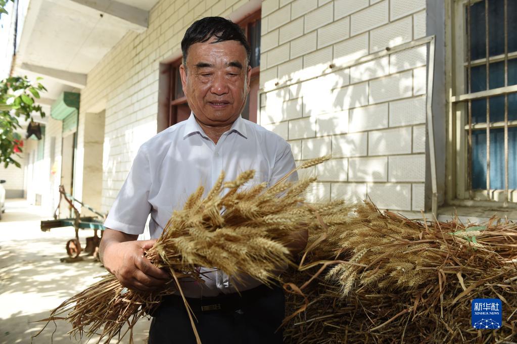 徐淙祥在安徽太和縣淙祥現(xiàn)代農(nóng)業(yè)種植專業(yè)合作社察看小麥樣品(2022年6月28日攝)。新華社記者 周牧 攝