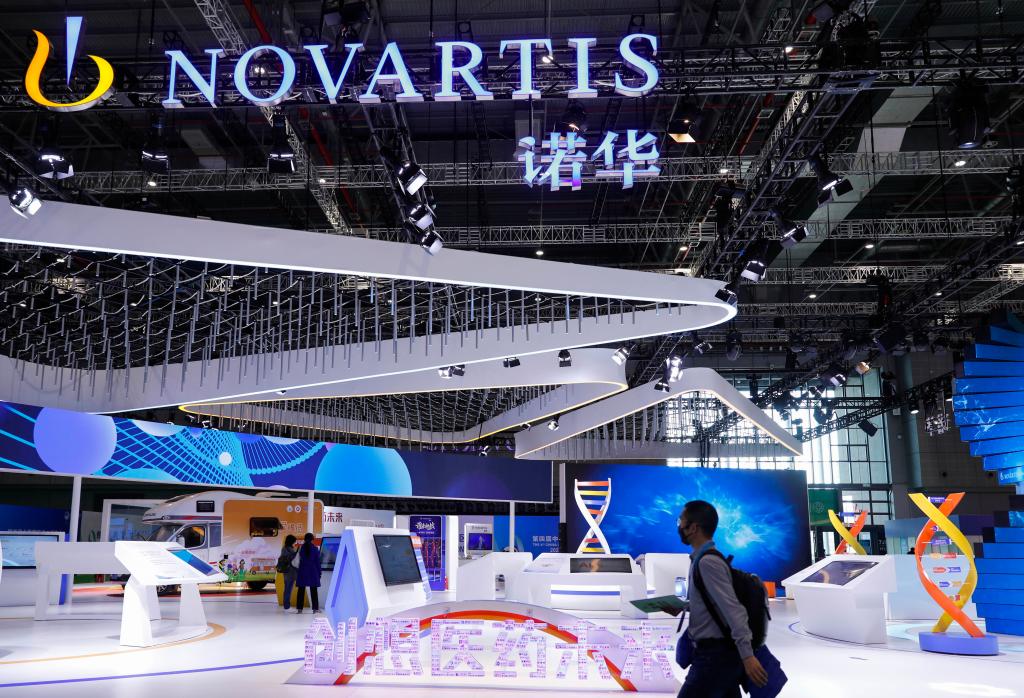 這是2021年11月9日拍攝的進博會醫(yī)療器械及醫(yī)藥保健展區(qū)的瑞士諾華展臺。(新華社記者 張玉薇 攝)