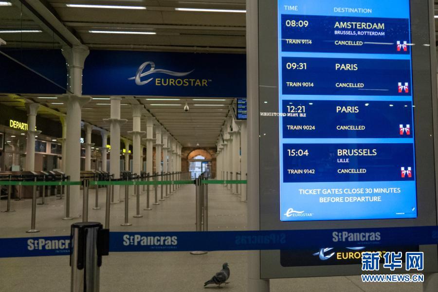 2020年12月21日,英國(guó)倫敦圣潘克拉斯火車(chē)站國(guó)際出發(fā)大廳內(nèi)顯示,多趟“歐洲之星”列車(chē)被取消。新華社發(fā)(蒂姆·愛(ài)爾蘭攝)