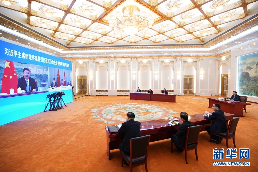 1月27日,國(guó)家主席習(xí)近平在北京以視頻連線(xiàn)方式聽(tīng)取了香港特別行政區(qū)行政長(zhǎng)官林鄭月娥2020年度的述職報(bào)告。新華社記者 鞠鵬 攝