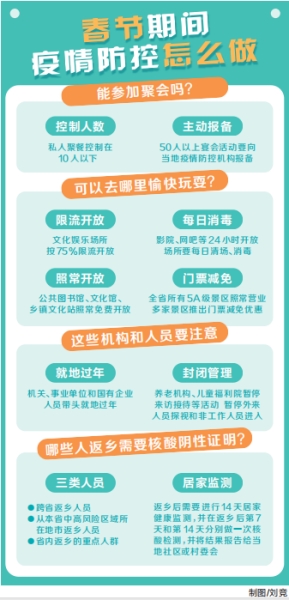 省衛(wèi)健委副主任張若石介紹,近日,省疫情防控指揮部就進(jìn)一步做好當(dāng)前新冠肺炎疫情防控工作、特別是冬春季農(nóng)村地區(qū)疫情防控下發(fā)通知,要求各地激活疫情應(yīng)急指揮體系,堅(jiān)持24小時(shí)值班值守,嚴(yán)格執(zhí)行“日?qǐng)?bào)告”“零報(bào)告”制度。要求減少大型聚集性活動(dòng),減少聚餐,減少人員流動(dòng)。50人以上活動(dòng)要制定防控方案,嚴(yán)格落實(shí)防控措施。文化娛樂(lè)場(chǎng)所按75%限流開(kāi)放,影院、網(wǎng)吧等24小時(shí)開(kāi)放場(chǎng)所要每日清場(chǎng)、消毒。私人聚餐控制在10人以下,50人以上宴會(huì)活動(dòng)要向當(dāng)?shù)匾咔榉揽貦C(jī)構(gòu)報(bào)備。機(jī)關(guān)、事業(yè)單位和國(guó)有企業(yè)人員帶頭就地過(guò)年。