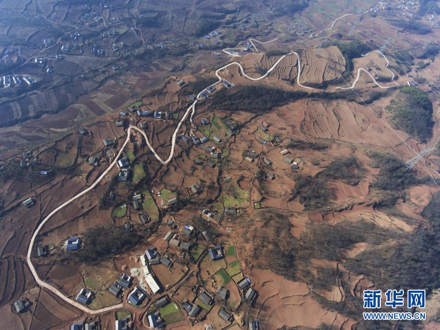 這是四川省涼山彝族自治州美姑縣九口鄉(xiāng)四峨吉村約6公里的道路硬化項(xiàng)目(2017年2月12日攝,無人機(jī)照片)。2015年8月,蔣富安由涼山州審計(jì)局派到美姑縣九口鄉(xiāng)四峨吉村任駐村第一書記,2016年8月22日因勞累猝死,年僅26歲。新華社記者 劉坤 攝
