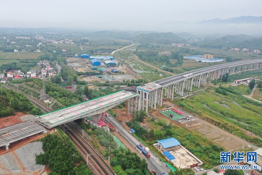 新華網(wǎng)鄭州9月22日電(范作言)9月20上午8:30,在河南南陽(yáng)澠淅高速(澠池-淅川)跨寧西鐵路(南京-西安)轉(zhuǎn)體橋施工現(xiàn)場(chǎng),隨著2臺(tái)牽引機(jī)的轟鳴啟動(dòng),重達(dá)21000噸的T構(gòu)梁緩慢順時(shí)針旋轉(zhuǎn),在歷時(shí)90分鐘旋轉(zhuǎn)67.5°后成功轉(zhuǎn)體,平穩(wěn)跨越了寧西鐵路和G312國(guó)道,在空中實(shí)現(xiàn)“華麗轉(zhuǎn)身”和精準(zhǔn)對(duì)接。