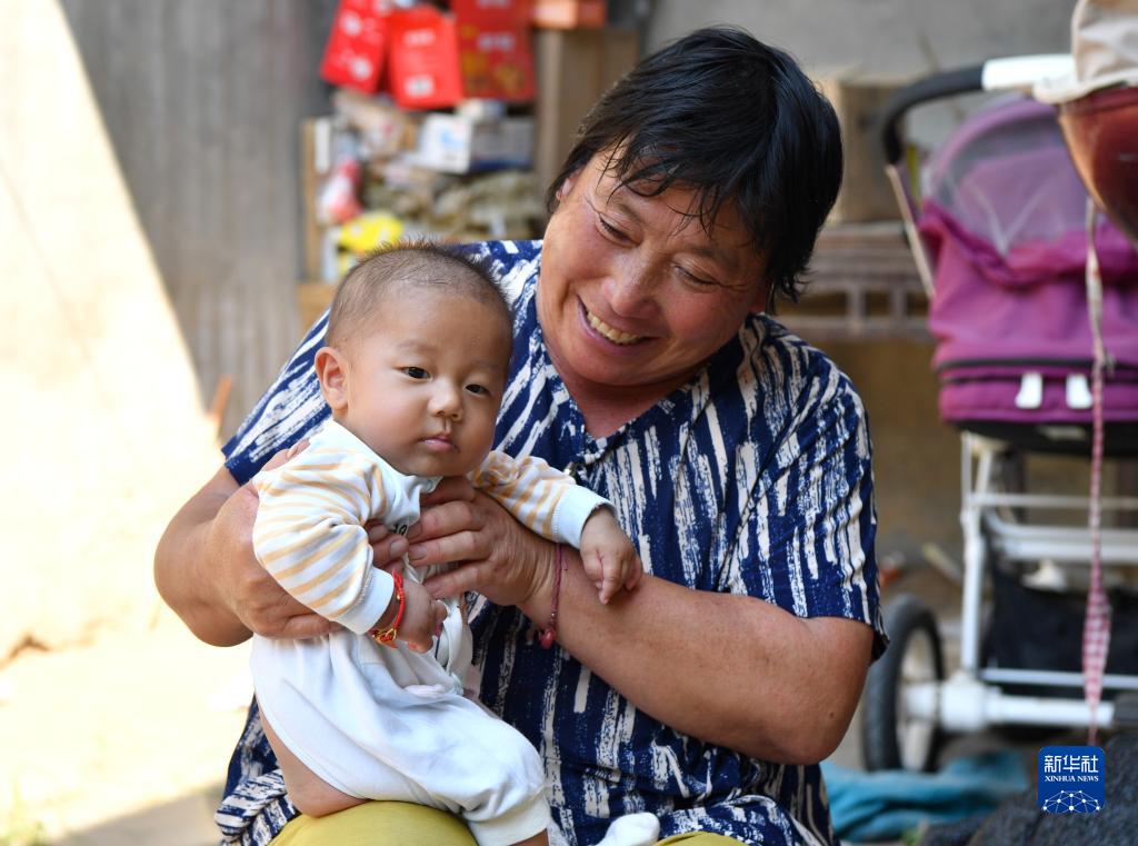 河南省尉氏縣張市鎮(zhèn)沈家村村民孫六在干完農(nóng)活后抱起孫子(9月17日攝)。新華社記者 李嘉南 攝
