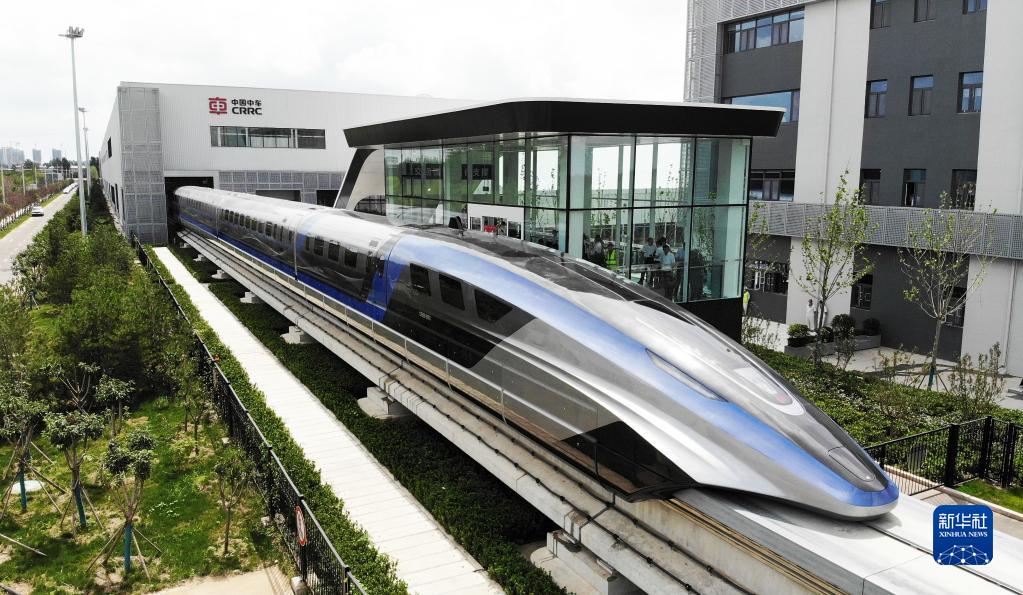 這是在山東青島拍攝的時速600公里高速磁浮交通系統(tǒng)(無人機照片,2021年7月20日攝)。新華社記者 李紫恒 攝
