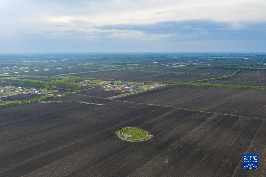 這是黑龍江省海倫市前進鎮(zhèn)光榮村已完成播種的黑土耕地(無人機照片,2022年5月23日攝)。新華社記者 謝劍飛 攝
