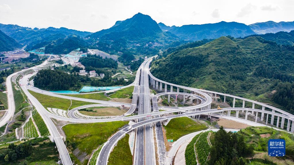 這是貴州石阡至玉屏高速公路花橋互通(2021年6月17日攝,無(wú)人機(jī)照片)。新華社記者 陶亮 攝